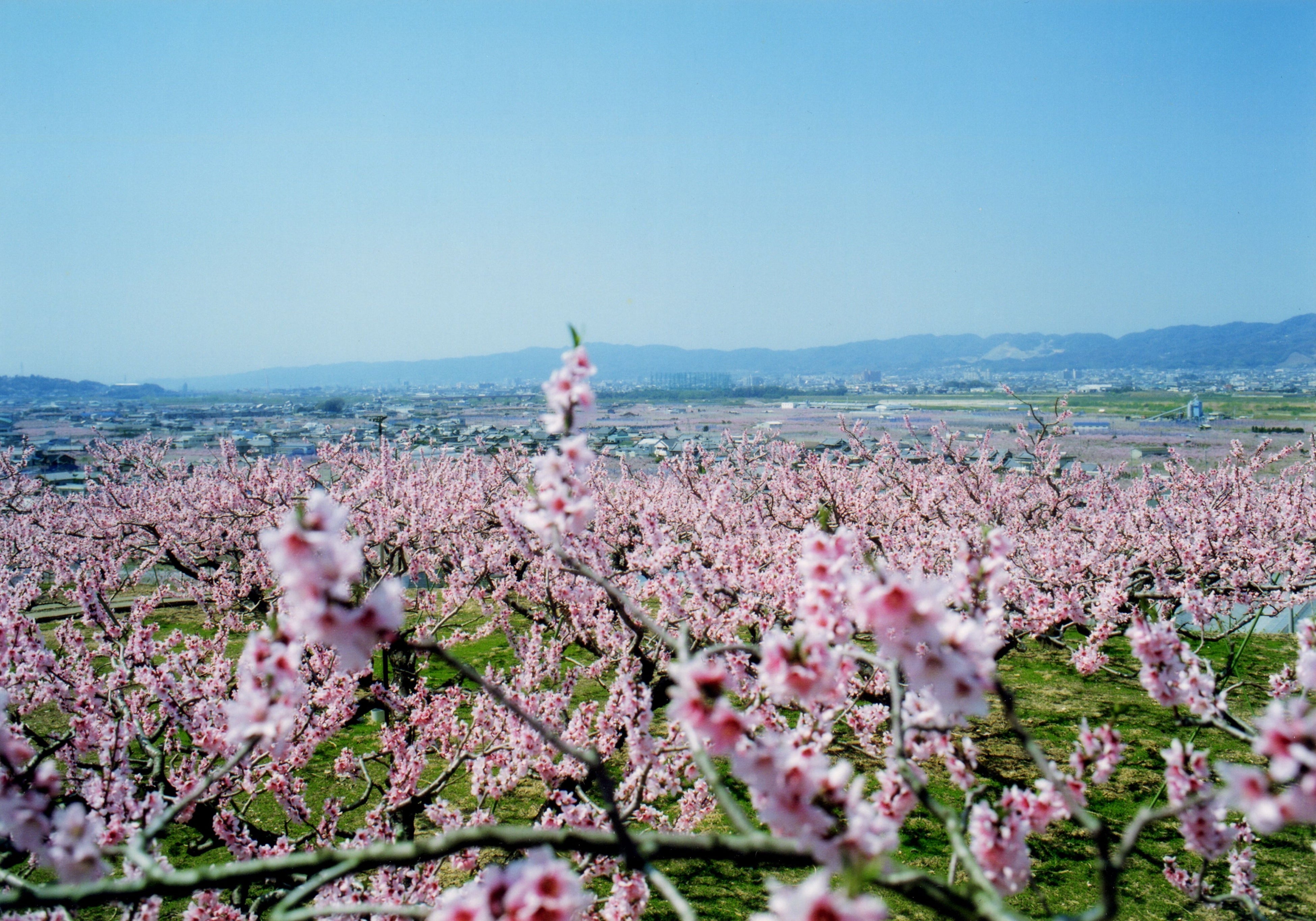 紀の川市はりんくうプレミアム・アウトレットのある大阪府泉佐野市と隣接しており、車で約40分ほどの距離に位置します。大阪府と和歌山県の県境という立地で利便性に富み、清流・紀の川がもたらす豊かな恵みと美しい自然により、全国生産量日本一の八朔(はっさく)をはじめ、キウイフルーツ、いちごなど四季折々の果物が収穫できる全国でも有数のフルーツ王国です。特に、「桃源郷」で栽培される「あら川」の桃はブランド桃として全国でもその名を知られています。