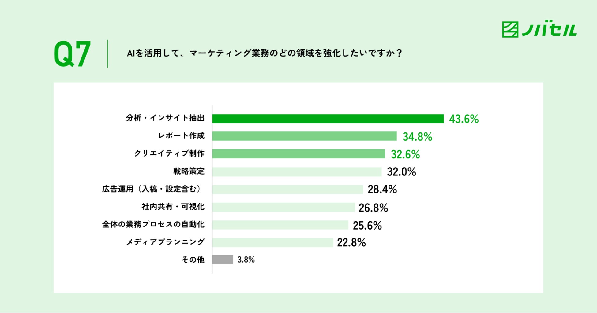 7.今後AIで強化したい領域は「分析・インサイト抽出」(43.6%)