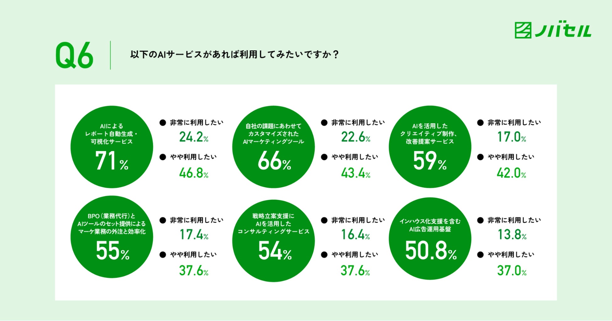 6.「AIによるレポート自動生成・可視化サービス」を利用したい人は7割