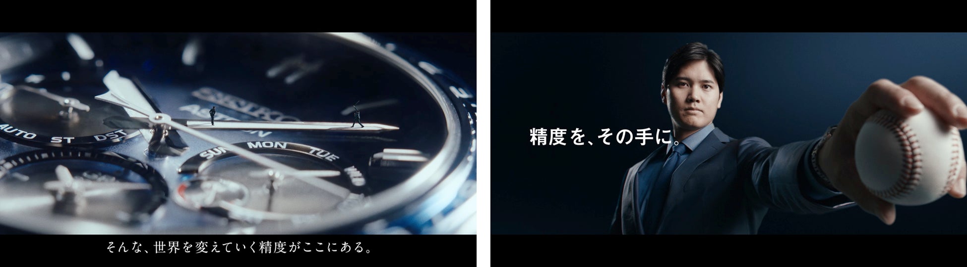 本CMは、大谷選手がアストロンの針の上で投打にわたって躍動する、パワーみなぎる映像です。ボールを意のままに操るピッチングと、真芯を捉えるバッティングを通じて、「精度」という機能価値・機能美を持つアストロンを表現する新CMとなっています。投打二人の大谷選手が時計の針の上で対峙するという点にも注目です。