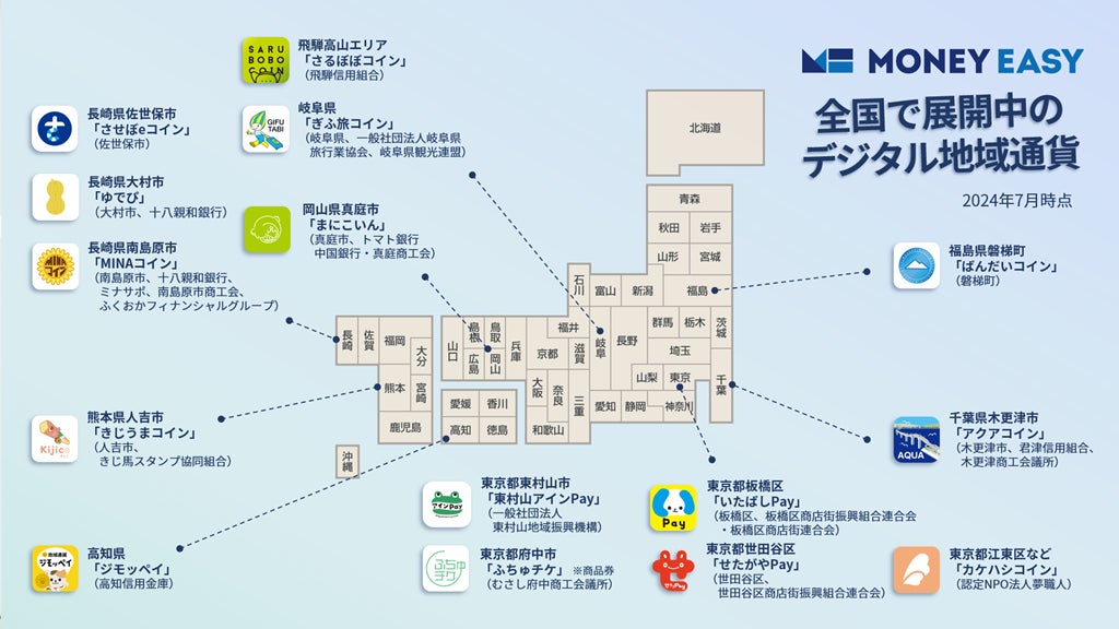 株式会社フィノバレーは、デジタル地域通貨プラットフォーム「MoneyEasy」を軸としたローカル決済ソリューションを通じて、地域や行政の様々な課題の解決を目指しています。岐阜県飛騨高山地域の電子地域通貨「さるぼぼコイン」や千葉県木更津市の「アクアコイン」、大分銀行・オーイーシーとの「デジタル商品券発行スキーム」、長崎県南島原市の「MINAコイン」、東京都世田谷区の「せたがやPay」、熊本県人吉市の「きじうまコイン」、福島県磐梯町の「ばんだいコイン」、東京都板橋区の「いたばしPay」、長崎県佐世保市の「させぼeコイン」、岡山県真庭市の「まにこいん」、東京都東村山市の「東村山アインPay」、長崎県大村市の「ゆでぴ」、高知県の「ジモッペイ」などへの提供および運用支援実績があります。