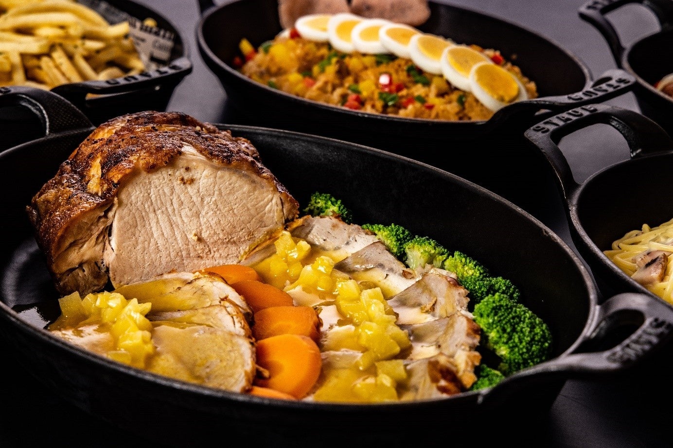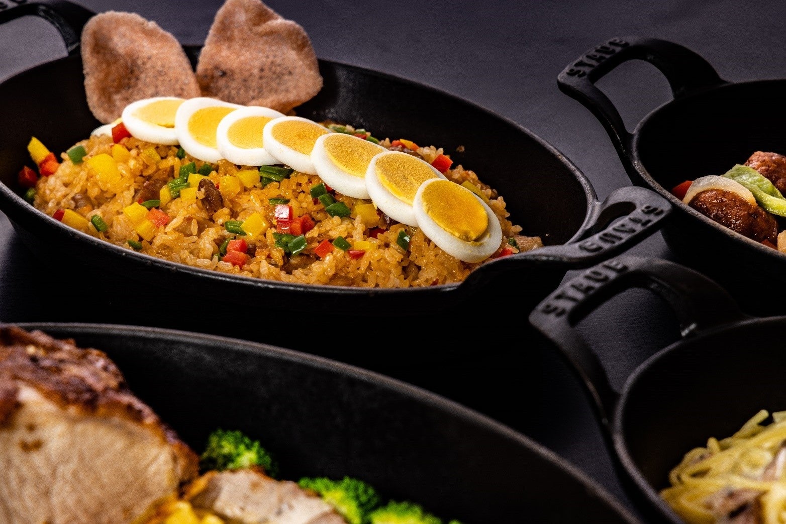 スイーツだけでなく、セイボリーメニューも豊富に取り揃えています。旬の食材を使った彩り豊かなサラダやピザ、ハーブやスパイスを効かせたエキゾチックなナシゴレン、また、レッドフランマ自慢の熔岩石グリラーで焼き上げる柔らかくジューシーなお肉料理をご用意いたします。
