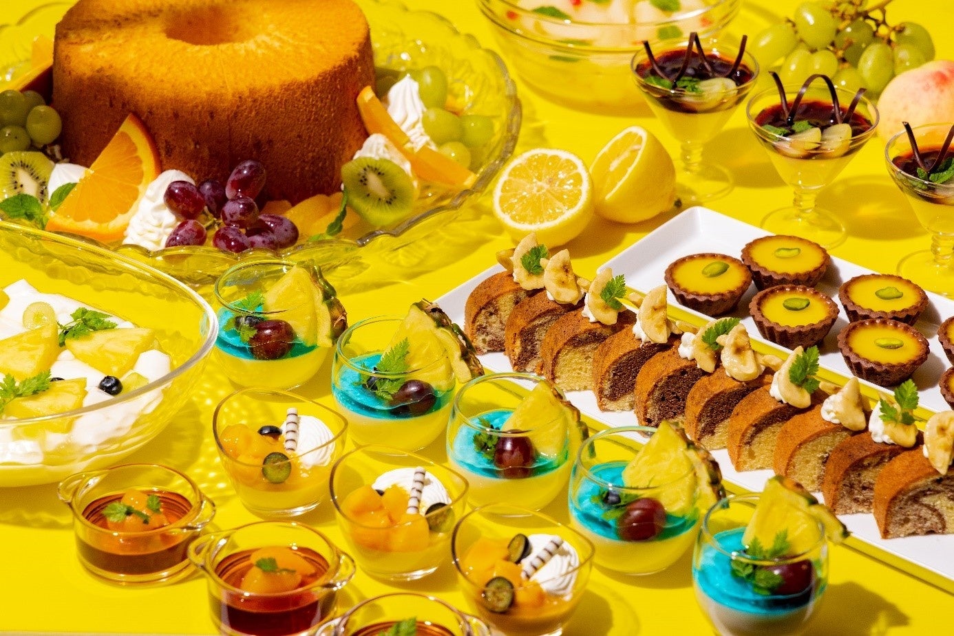 新鮮なマンゴーやパイナップル、キウイ、パッションフルーツなど、種類豊富なトロピカルなフルーツをふんだんに使用したデザートが勢揃いいたします。程よい甘さと酸味が爽やかなライチとフランボワのムース、透き通ったブルーのジュレが美しいトロピカルパンナコッタ、出来立てのチョコミントアイスなど、ホテルパティシエ特製のスイーツの数々を心ゆくまでお楽しみいただけます。