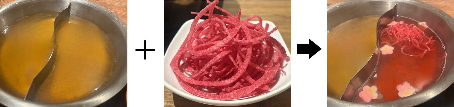 ●「くるくる紅芯大根」を鍋に入れると、だしがピンク色に変化!