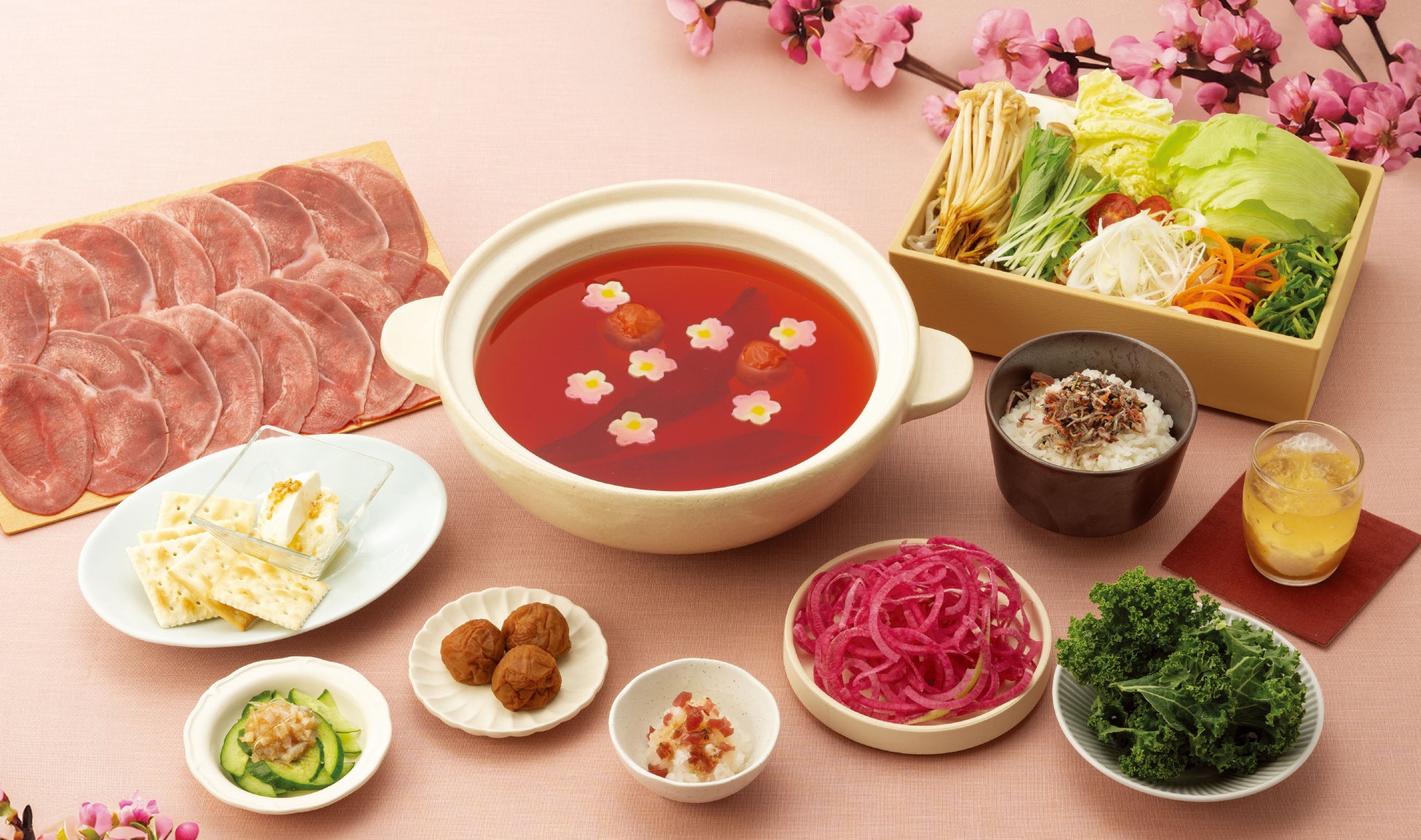 温野菜では、梅の花が咲き始めるこの時期に一足早い春の訪れを感じていただく為に、紀州南高梅を使用した「梅たんしゃぶ」を販売します。