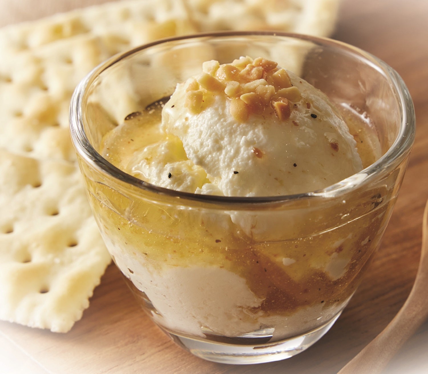 梅の酸味とチーズのコクが相性抜群。カナッペとは、一口大に切ったパンやクラッカーに、チーズや野菜などの具材を乗せて食べるフランス料理の事。