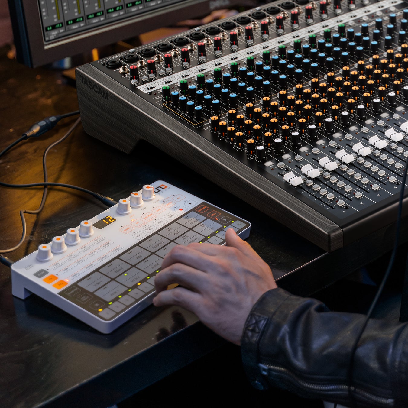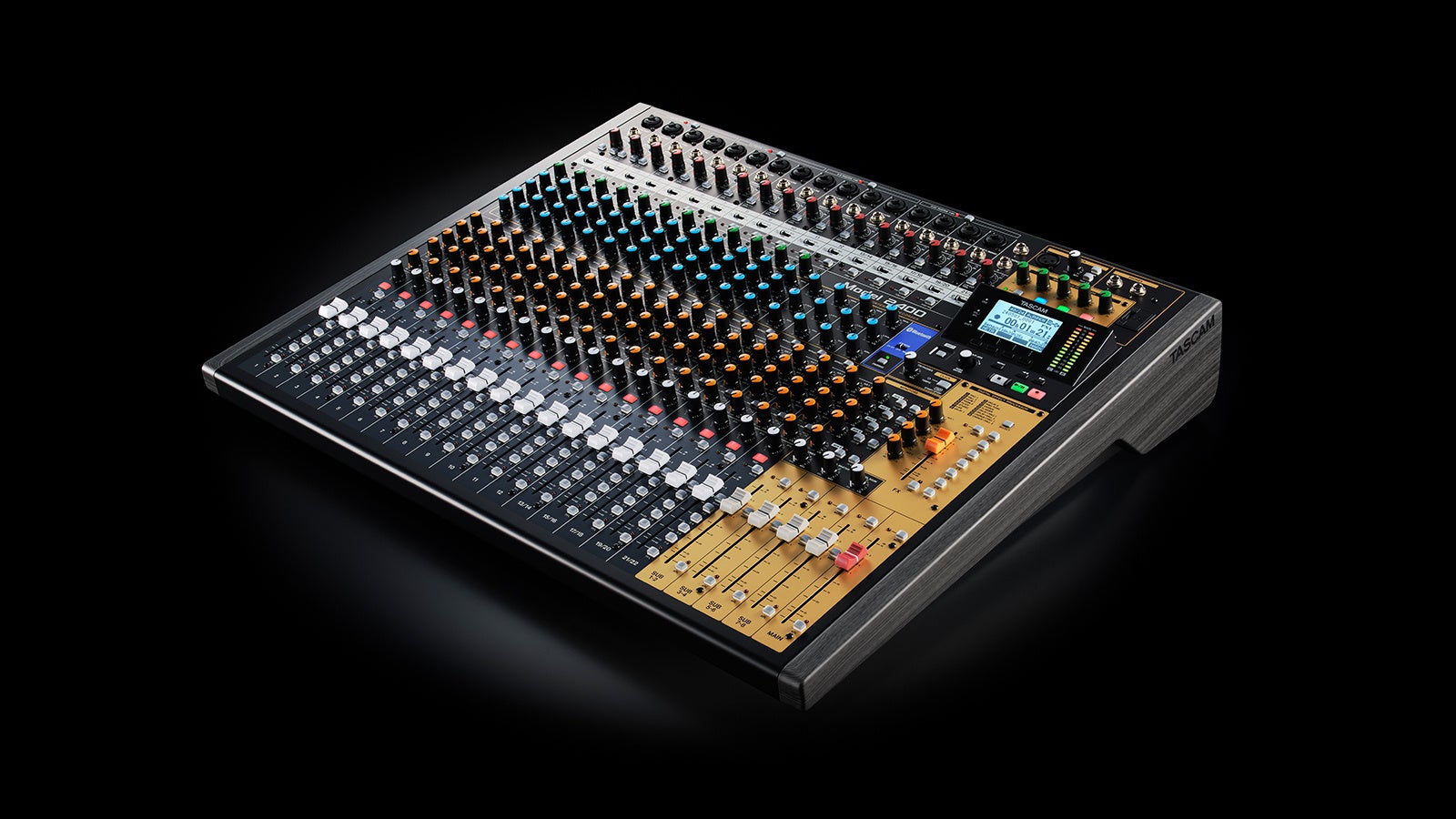 16 XLRマイク入力 / 22 TRSライン入力を装備、1-12チャンネルには原音に忠実なディスクリート形式のTASCAM Ultra HDDAマイクプリアンプを搭載。出力系統は、5つのモノラルAUXセンド(AUX5は内蔵FXセンド兼用)、4つのステレオSUBバス、MAIN L/R、CONTROL ROOM L/R、2つのヘッドホン端子を装備しています。自宅録音用途だけでなく、スタジオやライブハウス等の小規模PA/SR用としてもお使いいただけます。