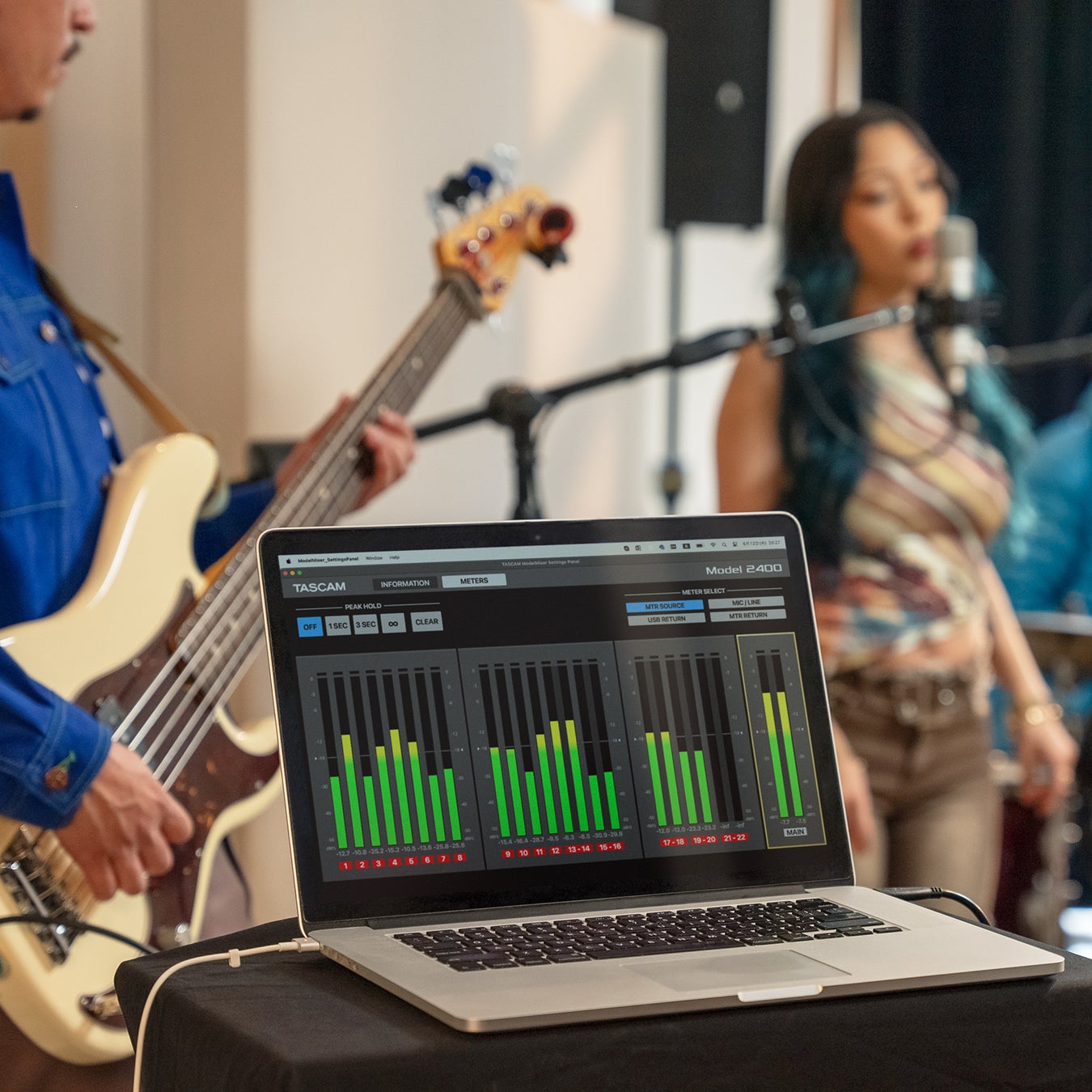 『Model 2400』は22チャンネル・ミキサー、24トラック・レコーダー、24イン/22アウトUSBオーディオインターフェースを搭載したModelシリーズのフラッグシップモデルです。高音質マイクプリアンプ、1ノブコンプレッサー、3バンドEQ、チャンネルインサート端子、5系統のAUXセンドと4系統のステレオSUBバスなど自宅録音や音楽収録で求められるミキサー機能を搭載。DAWトランスポートコントロールや、COMP/EQとインサート端子を装備したメイン出力、PC画面にメーターブリッジ表示ができる専用アプリなど、自宅録音/音楽収録用途において録音からミックスまでを1台で完結するシンプルなシステムソリューションを提供します。