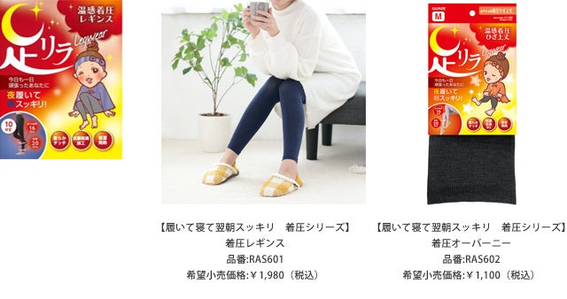 グンゼ株式会社(本社:大阪市北区、社長:佐口敏康)は、「足リラ」シートでおなじみの株式会社中村と、“おうちで楽ちんケア”をコンセプトとした秋冬のレッグウエアを新発売しました。