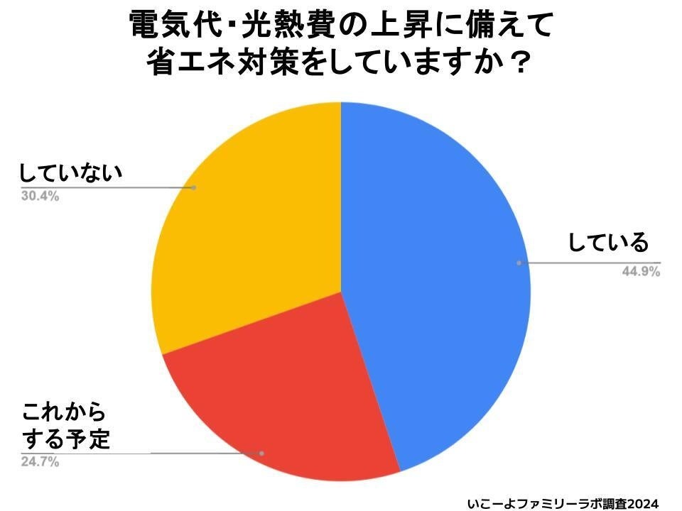 「電気代・光熱費の上昇に備えて省エネ対策をしていますか?」という質問には、4割を越える家庭が「している」と答えました。