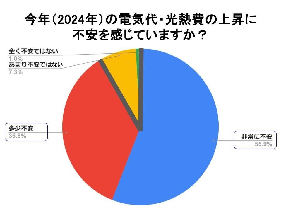 なかでも「非常に不安」と回答した割合は全体の約6割となり、多くの家庭が2024年夏の光熱費に対して強い懸念を抱いていることが分かりました。