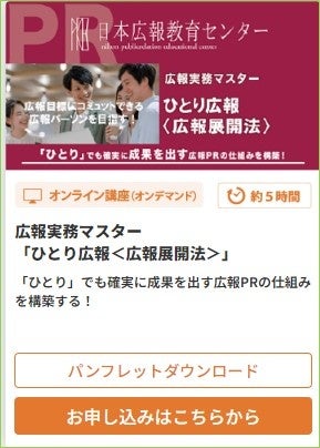 【ひとりぼっちの広報の方、必見!】日本広報教育センター/広報実務マスター講座「ひとり広報<広報展開法>」の受講者が急増!受講特典キャンペーンとして無料コンサルティング!