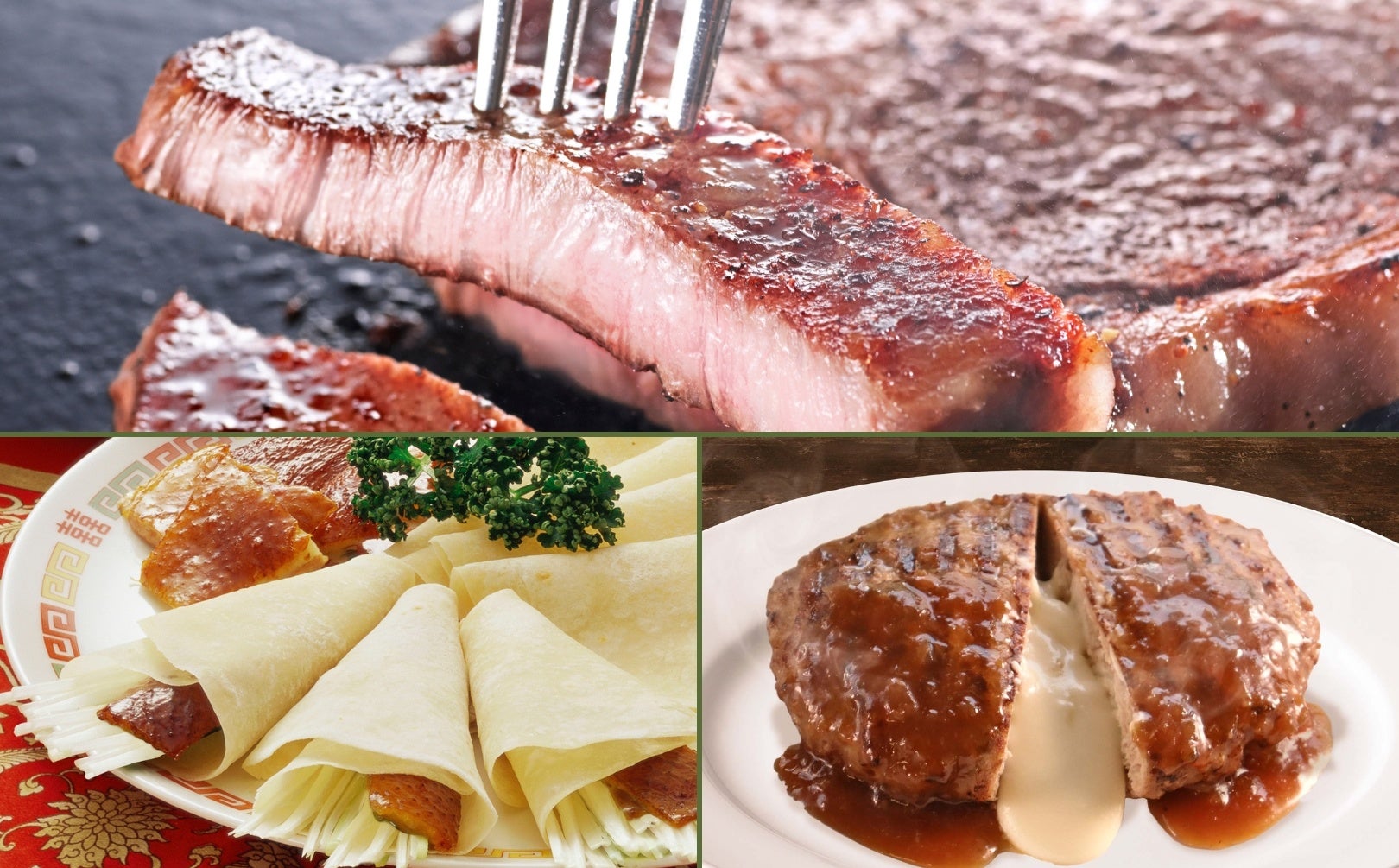 プレミアムコースでは、2種の『グリルメニュー(ビーフステーキ/チーズインハンバーグ)』と、肉厚ジューシーな『北京ダック』、濃厚チーズで野菜を楽しむ『野菜のチーズフォンデュ』、プリプリ海老と特製チリソースが絶妙の『海老のチリソース』も食べ放題!