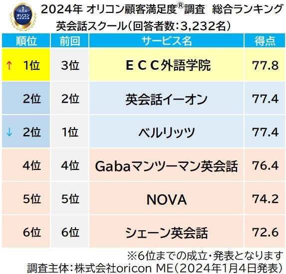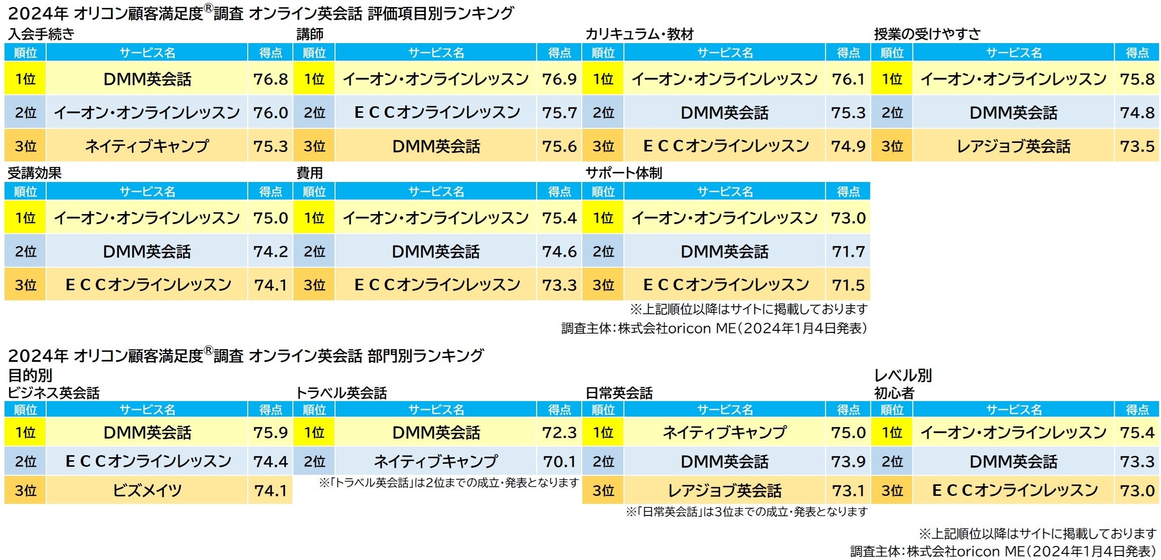 最新 満足度の高い『オンライン英会話』『英会話スクール』ランキング┃オンラインは【イーオン・オンラインレッスン】が6年連続総合1位 スクールは【ECC外語学院】が初の総合1位(オリコン顧客満足度)