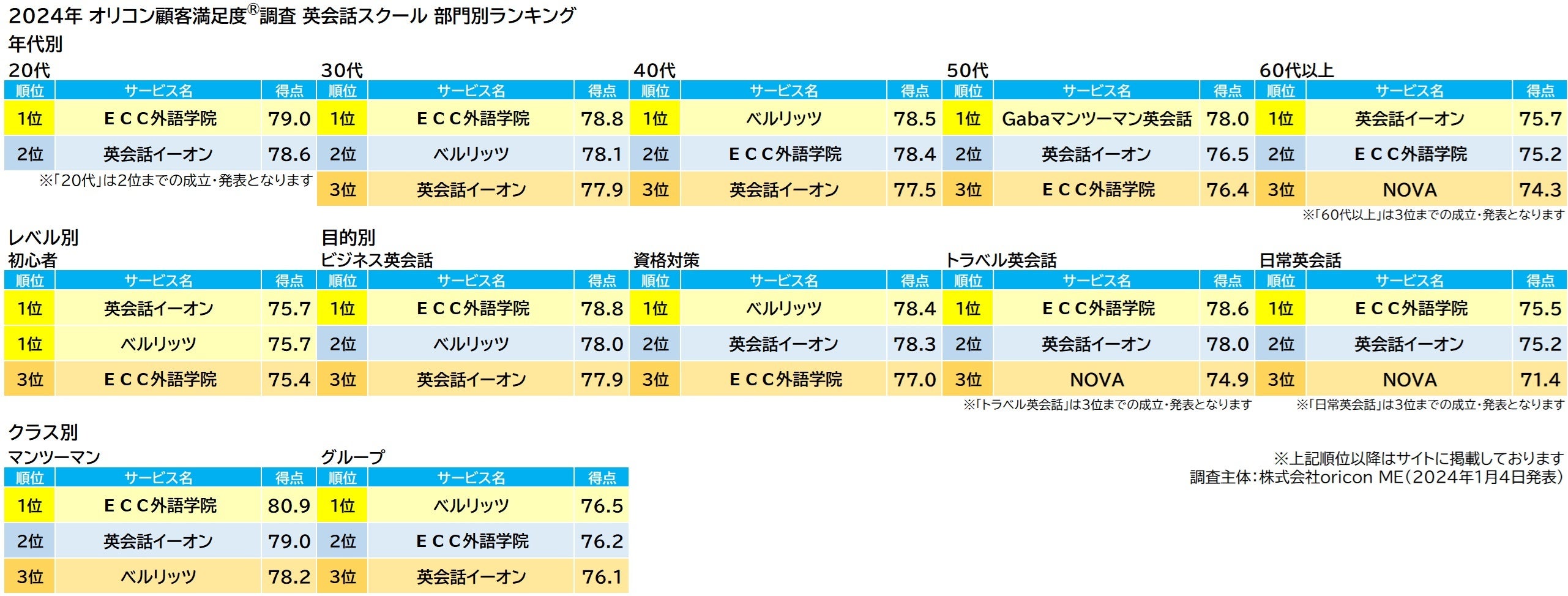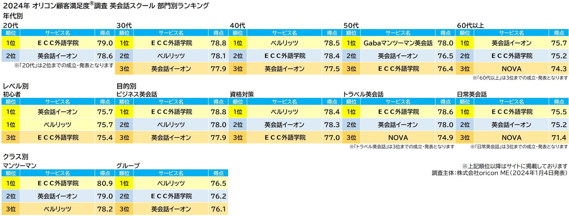 【ECC外語学院】が調査開始以来、初の総合1位 「トラベル英会話」「マンツーマン」の2部門で3年連続1位に