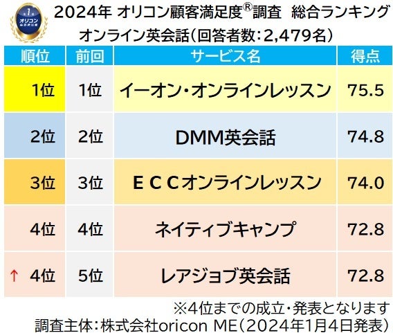 2024年 オリコン顧客満足度®調査 英会話スクール