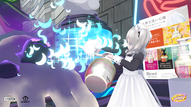 ブースに近づくと、手が汚れて動けなくなってしまった巨大な花王Vketちゃんから声をかけられます。エレベーターに乗り込み花王ブースに入ると、花王Vketちゃんから、「手から出てくる汚れモンスターを退治してほしい」との依頼が!毎日忙しいあなたの気分に寄り添う泡ハンドソープ『ビオレ ザ ハンド』を使って、花王Vketちゃんの手の上に現れる汚れモンスターをどんどん洗い流していきましょう!