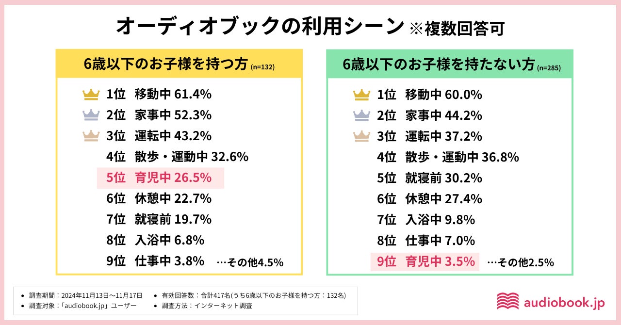 オーディオブック、育児シーンで広がる需要 6歳以下の子を持つユーザーの26.5%が育児の合間に活用 見守り中や寝かしつけ中を読書時間に