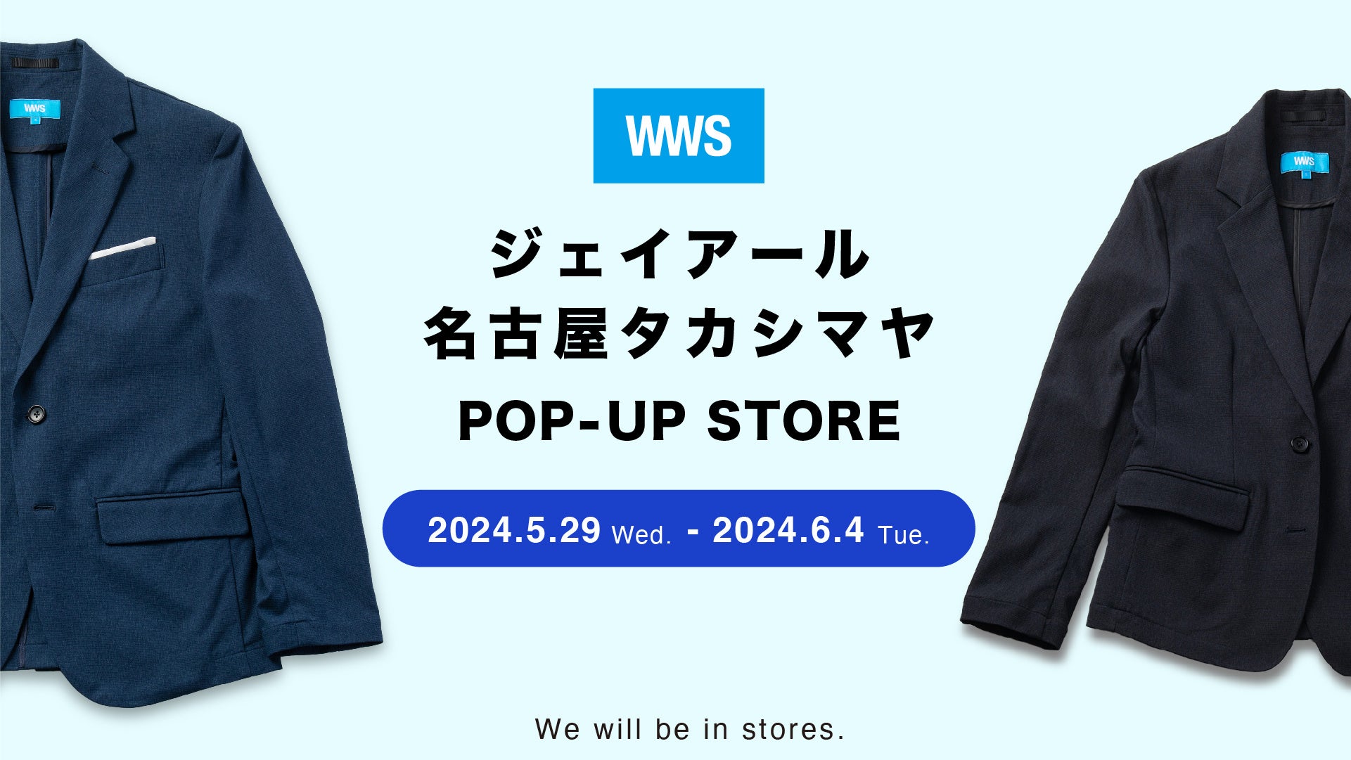 作業着スーツ発祥のボーダレスウェアブランド「WWS/ダブリューダブリューエス」(以下WWS)を企画・販売する株式会社オアシスライフスタイルグループ (所在地:東京都港区)は、2024年5月29日(水)から6月4日(火)の間、ジェイアール名古屋タカシマヤにてポップアップを開催します。店頭では、通気性・速乾・撥水に優れた夏用スーツや、夏場の不快要素『べたつき・蒸れ』を解決するポロシャツなど、これから訪れる梅雨や夏に適した機能的なアイテムを販売いたします。