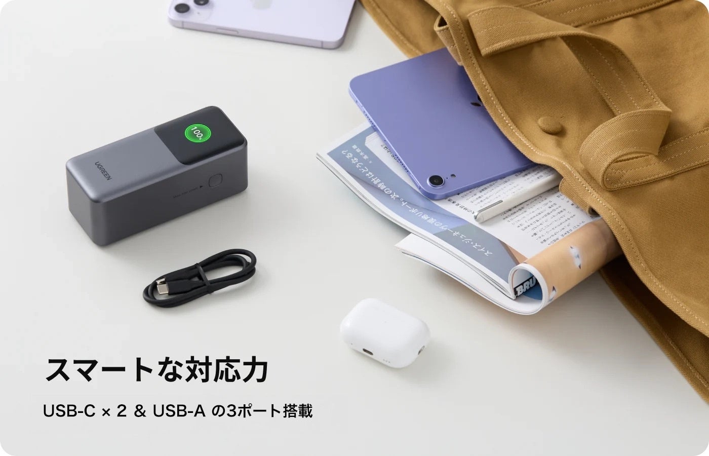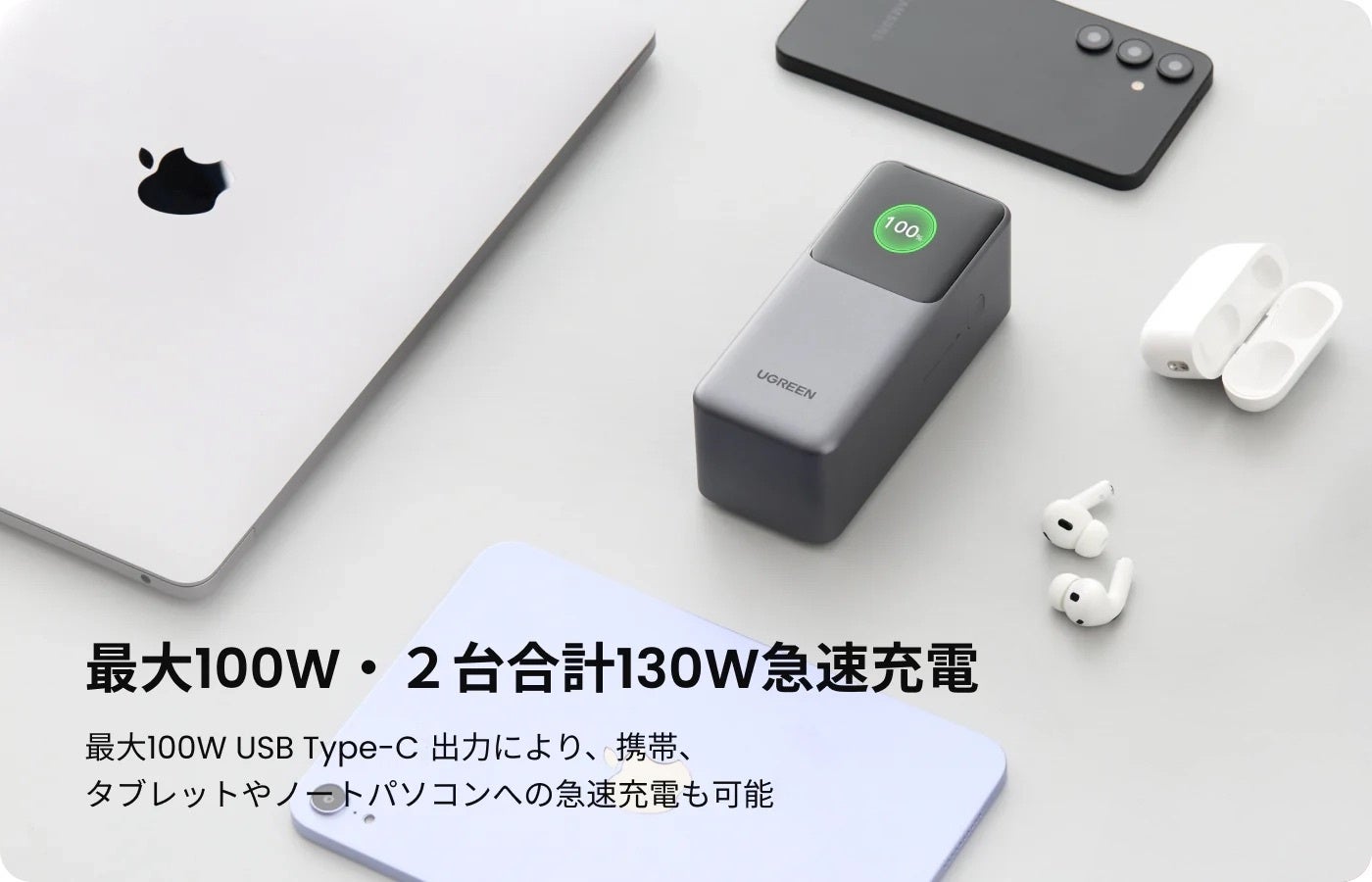 UGREEN Nexode 20000mAh 急速充電モバイルバッテリー 130W 35524B | 最大100WのUSB-C出力により、タブレットやノートパソコンも急速充電できる充電器を取扱開始