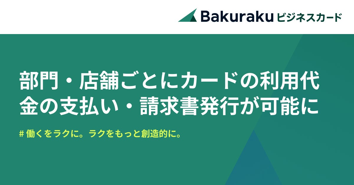 バクラクビジネスカード、部門・店舗ごとにカードの利用代金の支払い方法の設定と請求書発行ができる機能をリリース