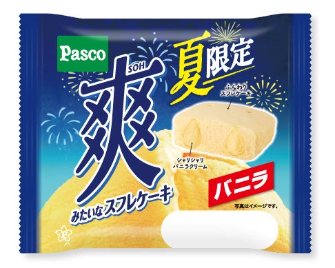 国産小麦の小麦粉を100%使用した、くちどけの良いスフレケーキ生地に、バニラの風味と「爽」のシャリシャリ食感を再現した爽快感のあるクリームを入れて仕上げました。