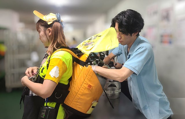 まるで、F1レースのピットインさながら!?樽を空にした売子が駆け込んでくるバックヤードでの迫力ある樽交換の瞬間を生中継します。