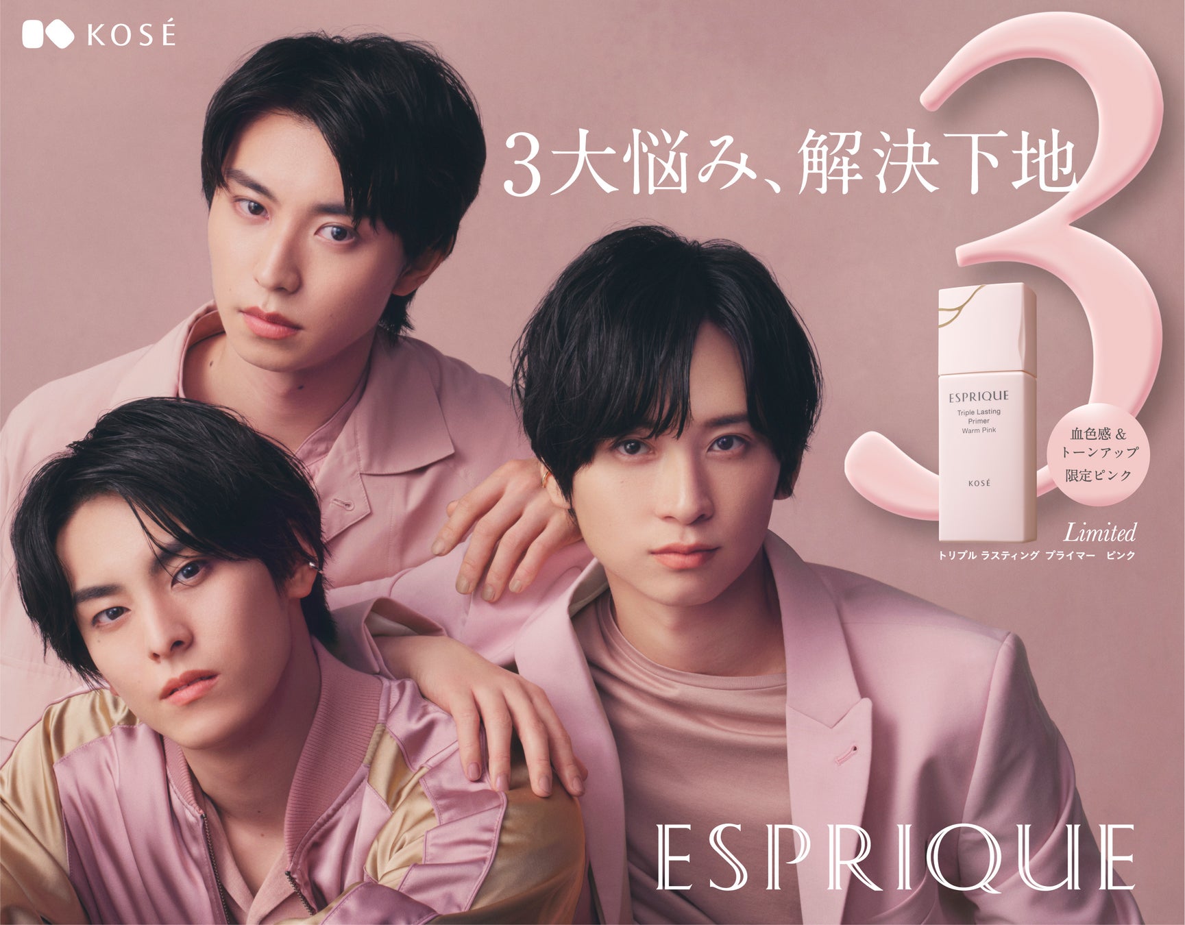 今年3月に発売した「エスプリーク トリプル ラスティング プライマー」は、2.5次元作品や様々なメディアで活躍する人気俳優の3人とのスペシャルタイアップが大反響。今回の限定色発売でも、荒牧慶彦さん、高野洸さん、阿部顕嵐さんのオリジナルトレカプレゼントキャンペーンを実施します。