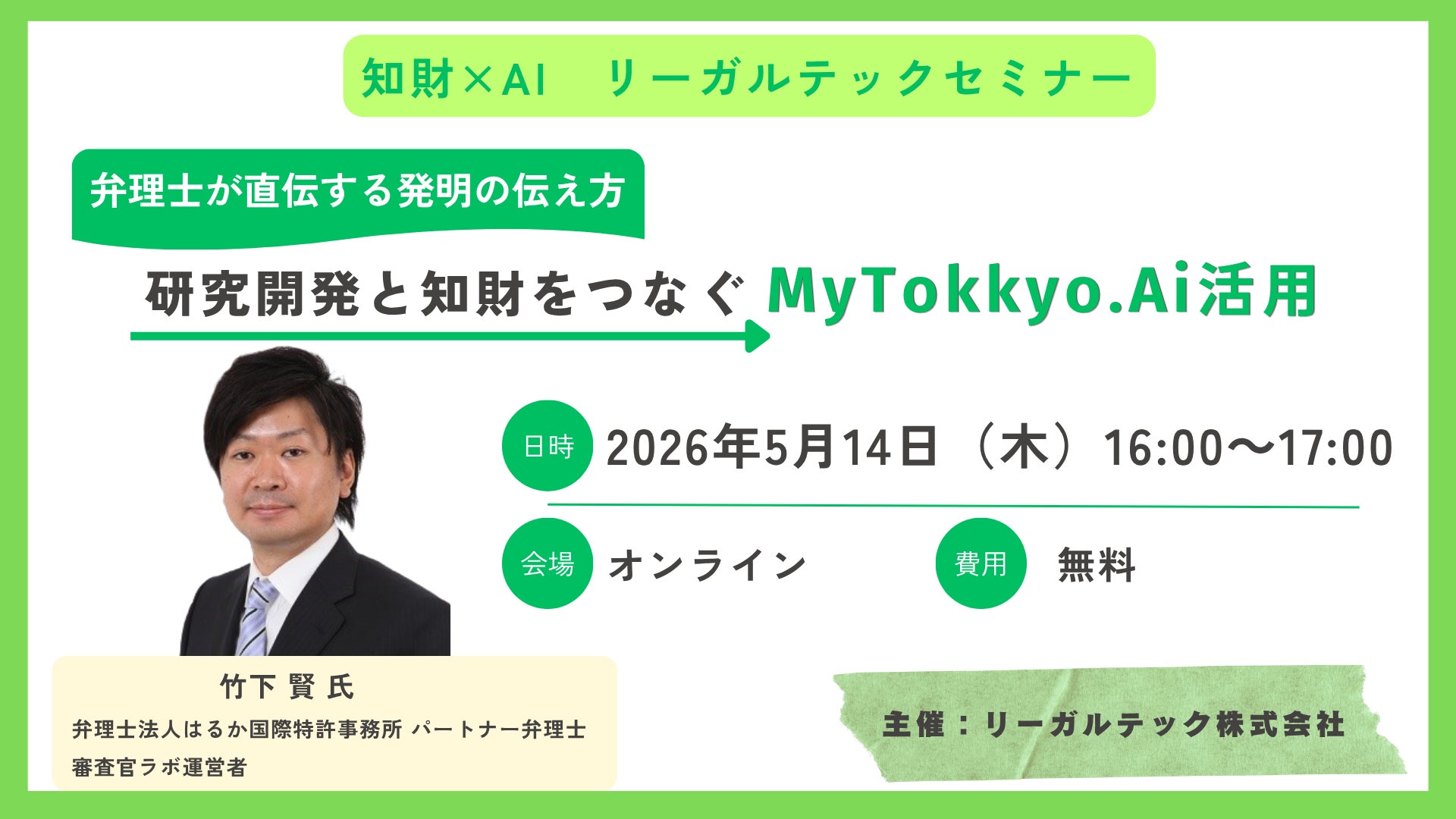 【2026年5月14日(木)16時開催@オンライン】知財×AIリーガルテックセミナー