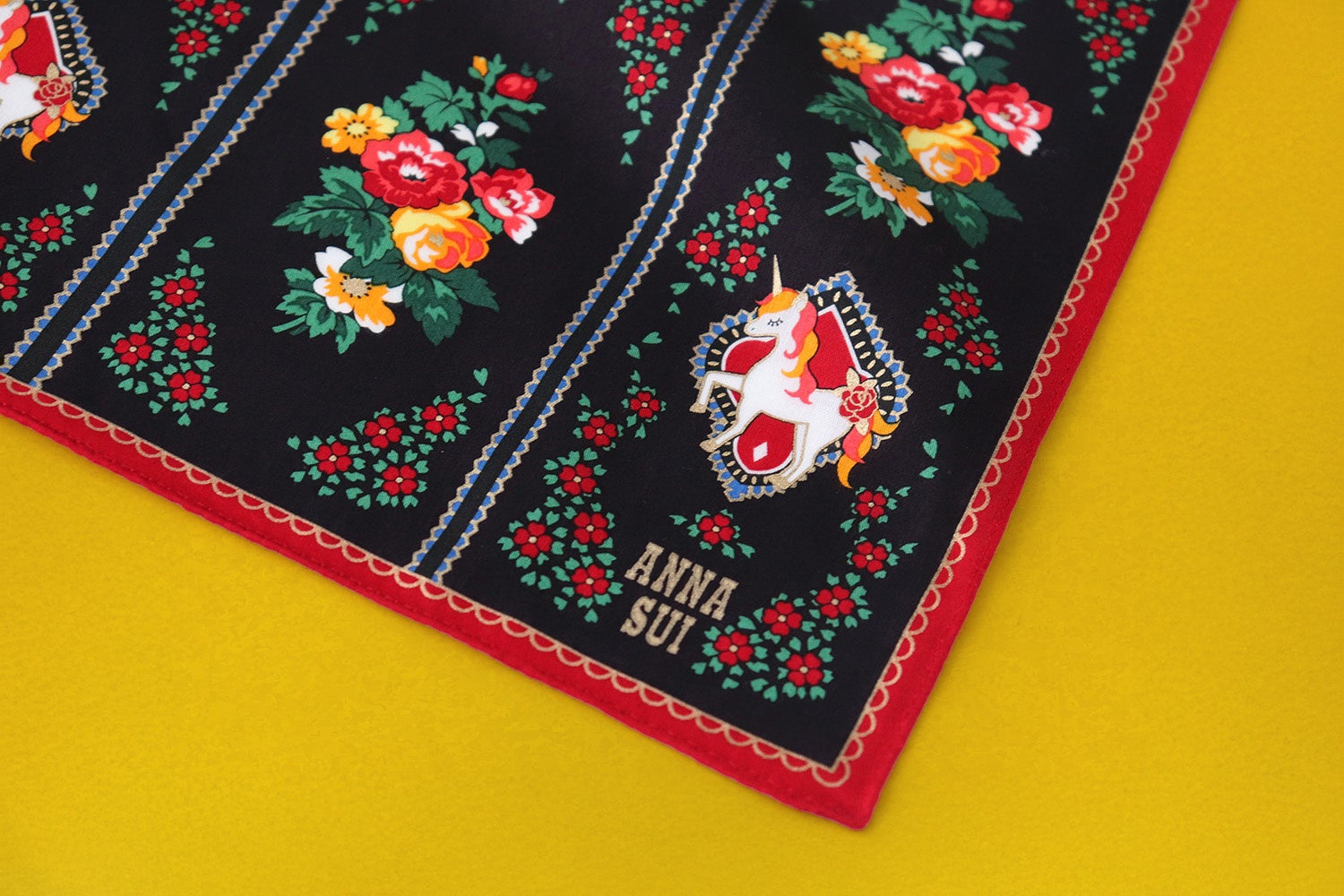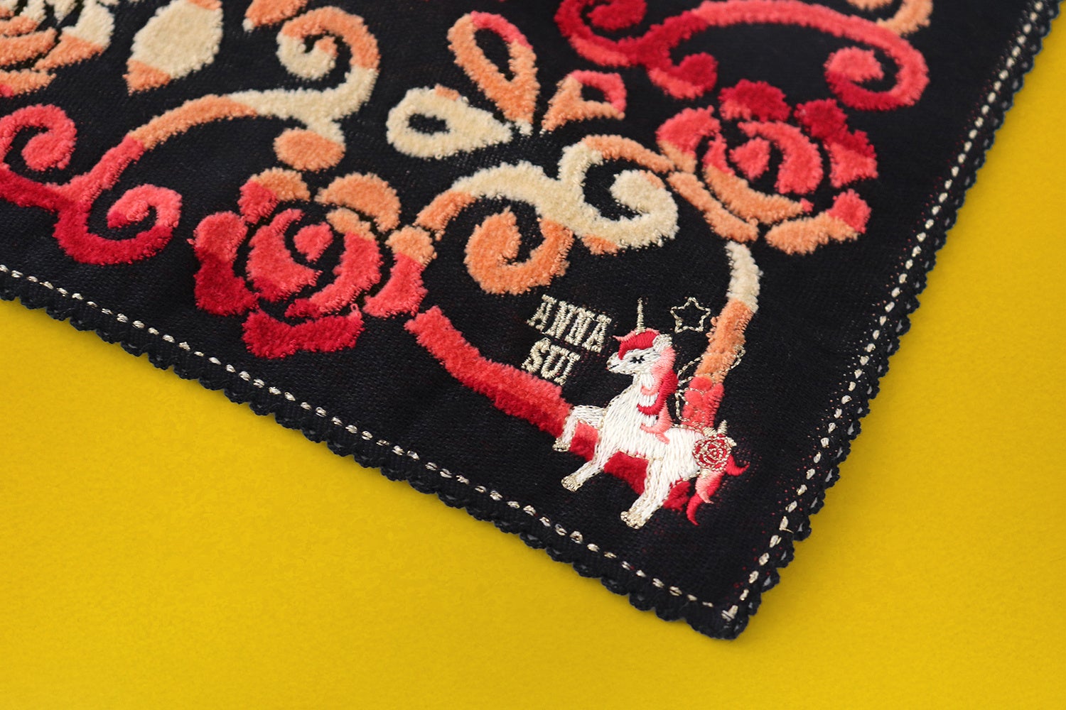 アナ スイらしい装飾的なデザインに、干支“午”をイメージしたユニコーンモチーフを組み合わせたスペシャルなハンカチ。