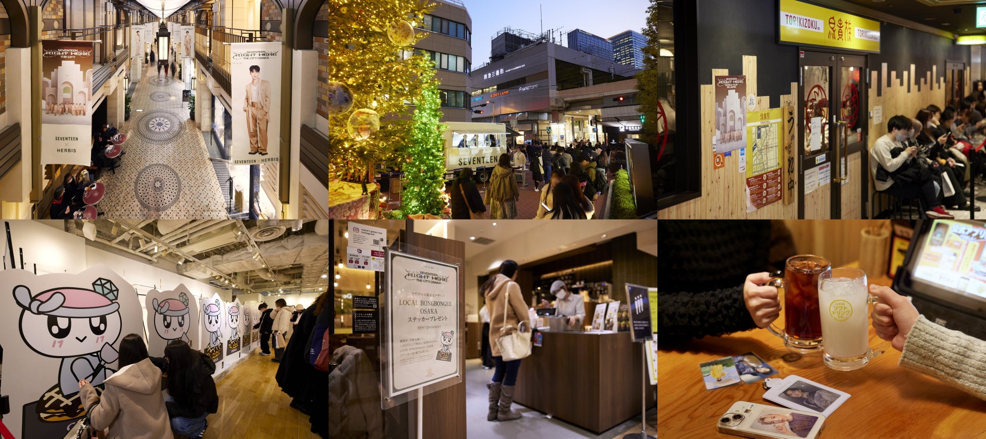 大阪では中心地である梅田の5つの商業施設とコラボレーションし、SEVENTEENのビジュアルが街中を彩りました。今年の5月にスタジアムツアーにあわせて行われた『THE CITY』に続いて、大阪創業の焼き鳥チェーン店「鳥貴族」では、会計時に合言葉「鳥貴族アジュナイス」と言うと特典のオリジナルコースターがもらえるコラボレーションを4都市29店舗で実施。特典の配布枚数は前回対比約10%増となる6万以上にのぼりました。SNSには、店員との掛け合いやファン同士の交流を楽しむ動画や写真が多数アップされ、盛り上がりを見せました。