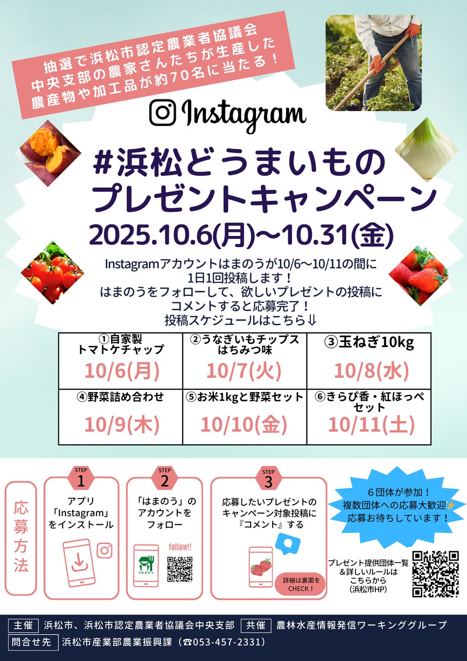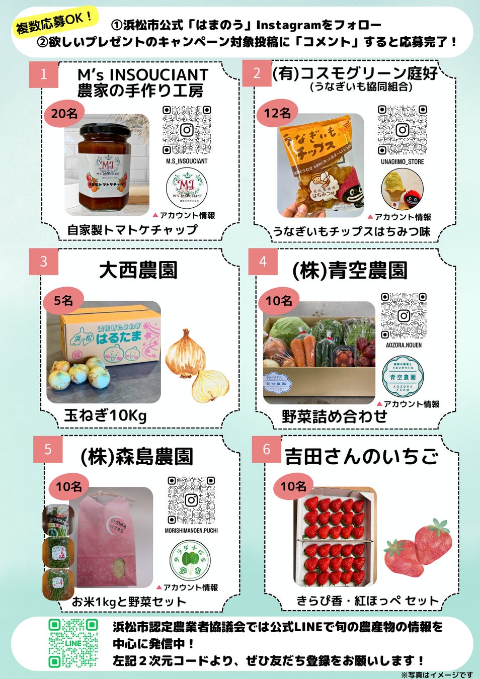 抽選で約70名に、浜松市内(6団体)のおいしい農産物や加工品が当たります!