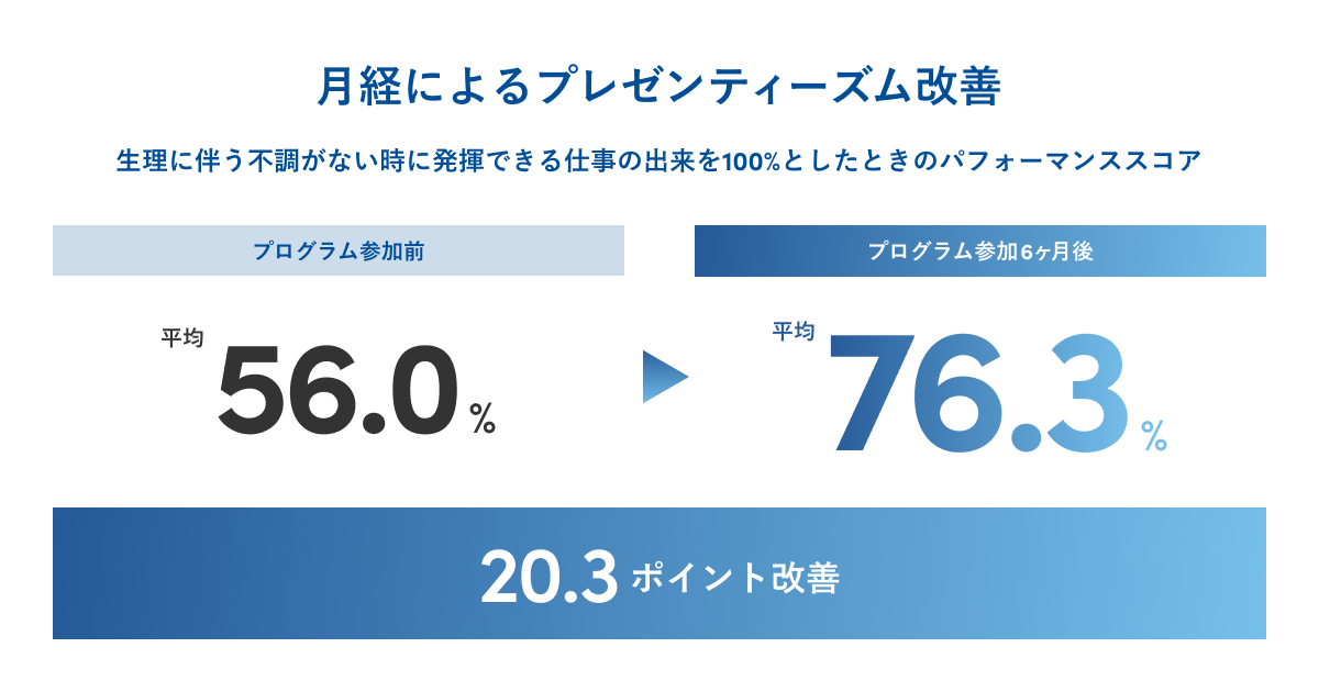 生理に伴う不調が20%改善、生産性高く成果を出せる職場づくりを推進