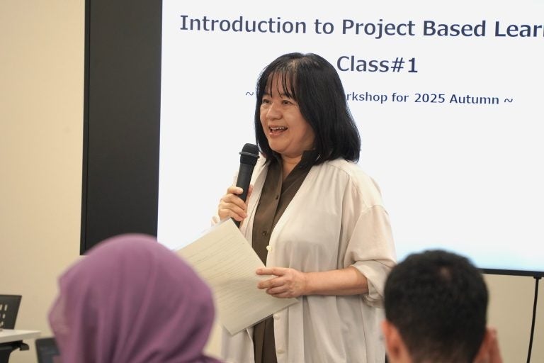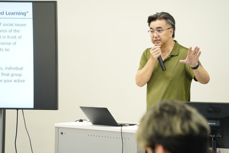 松浦康之講師による「課題解決入門(Introduction to Project Based Learning)」の授業では、叡啓大学の特色である実践型科目「課題解決演習(PBL)」の基礎を学びました。