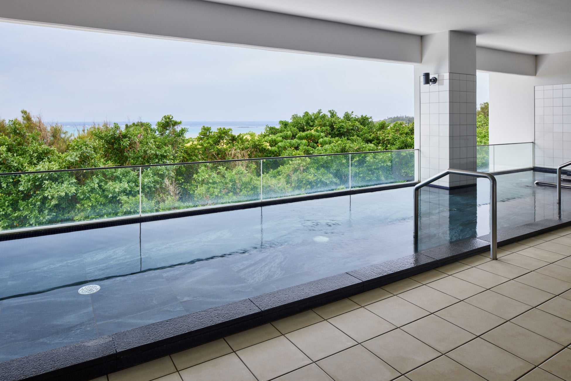 当ホテルでは、夕食、朝食、ビュッフェレストランやロビーラウンジでのドリンク、展望風呂やビーチでの一部アクティビティやプールの利用などが含まれたオールインクルーシブで、気の向くままに滞在を楽しめます。大型ウォータースライダーや流れるプールを有する沖縄県内最大級の「オールデイプール」は、エリアの中央に位置する「うまんちゅプール」、水深25cmでお子様向けの「わらばープール」、18歳以上の方が利用できる「ゆくるプール」、一周約128mの流れるプール「てぃんがーらプール」の4つのプールと3つのウォータースライダーを完備し一日を通して遊べる施設です。また、オーシャンビューの客室やロビーラウンジ、ビュッフェレストラン、展望風呂など、充実の施設を完備。展望風呂では、時間帯によって透き通るような東シナ海や美しいサンセットを望むことができ、日常を忘れてくつろぎのひとときを過ごせます。