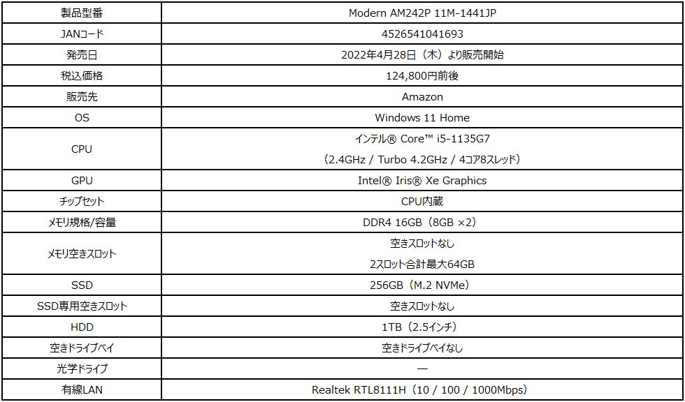 人気のオールインワンPCにWindows 11モデルが登場! モニター1台分のスペースで使用できるのでビジネス・テレワーク用途に最適 「Modern AM242P 11M-1441JP」発売
