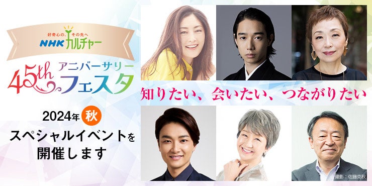 知りたい、会いたい、つながりたい NHKカルチャーは、おかげさまで創立45周年を迎えます。これを記念し、特別な感謝の気持ちを込めたスペシャルイベントを多数ご用意いたしました。