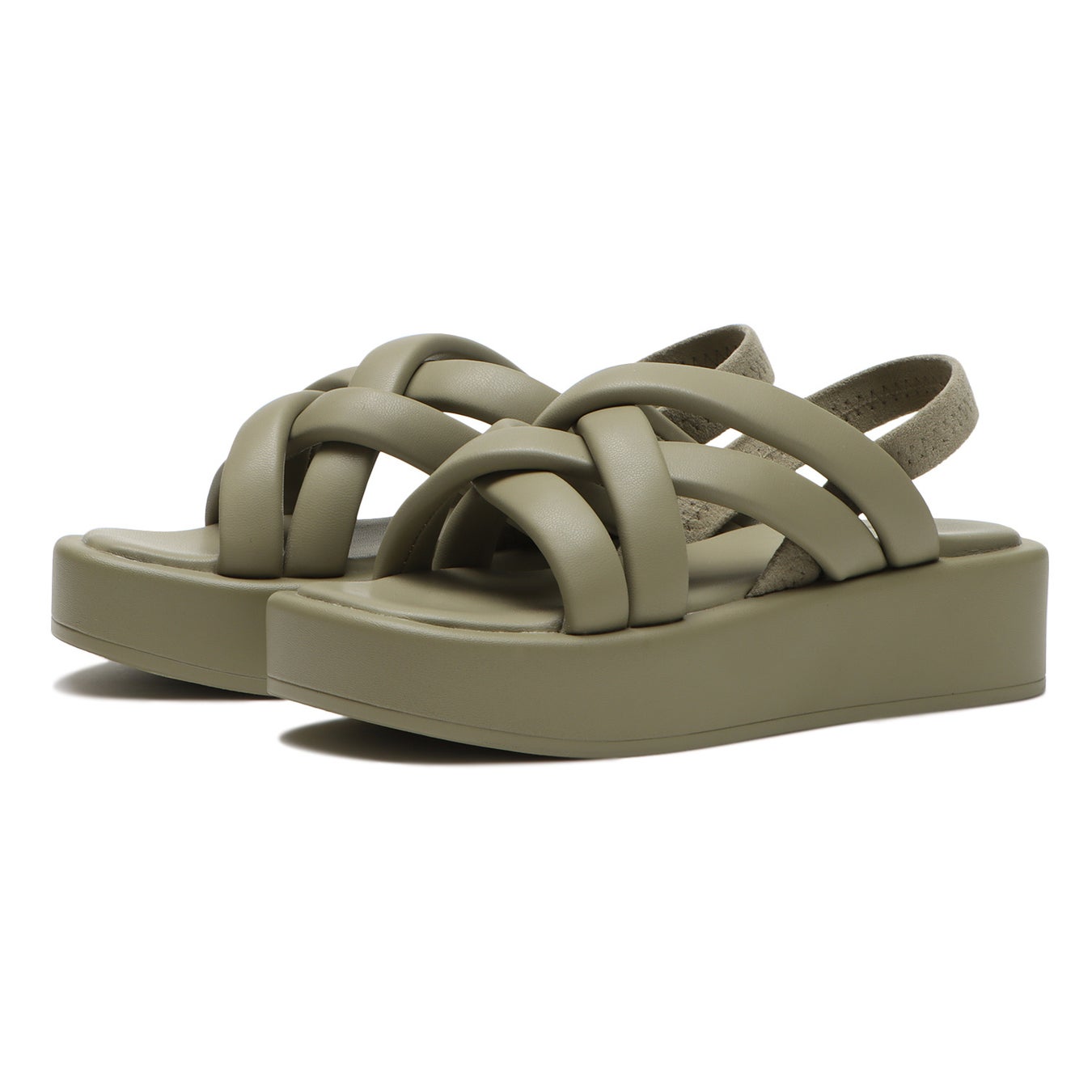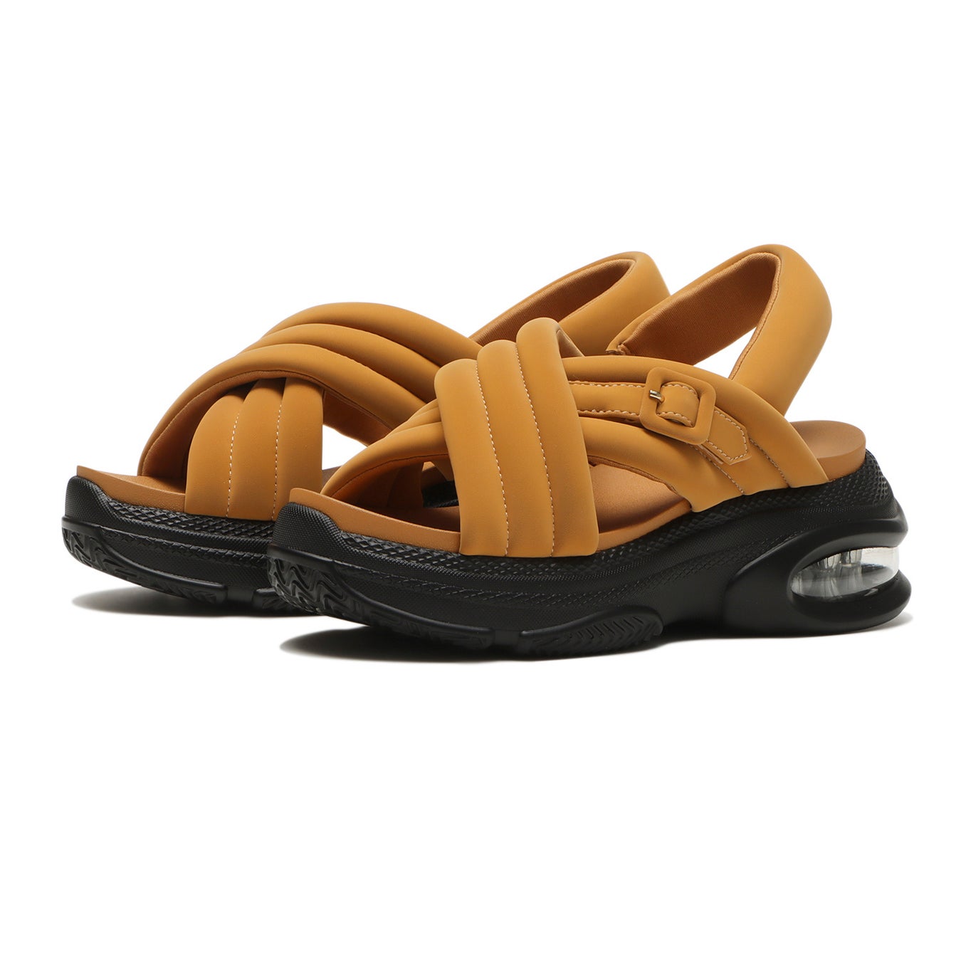 大好評のエア入りソールを使用したボリュームのあるクロスデザイン×スポーティな厚底で、モードなコーディネートにピッタリ。スポーツサンダルなのに、エレガントなムードも醸し出す大人に嬉しいシリーズです。フットベットとソールの組み合わせでクッション性を高め、歩き易さは勿論、厚底脚長効果も期待できます。