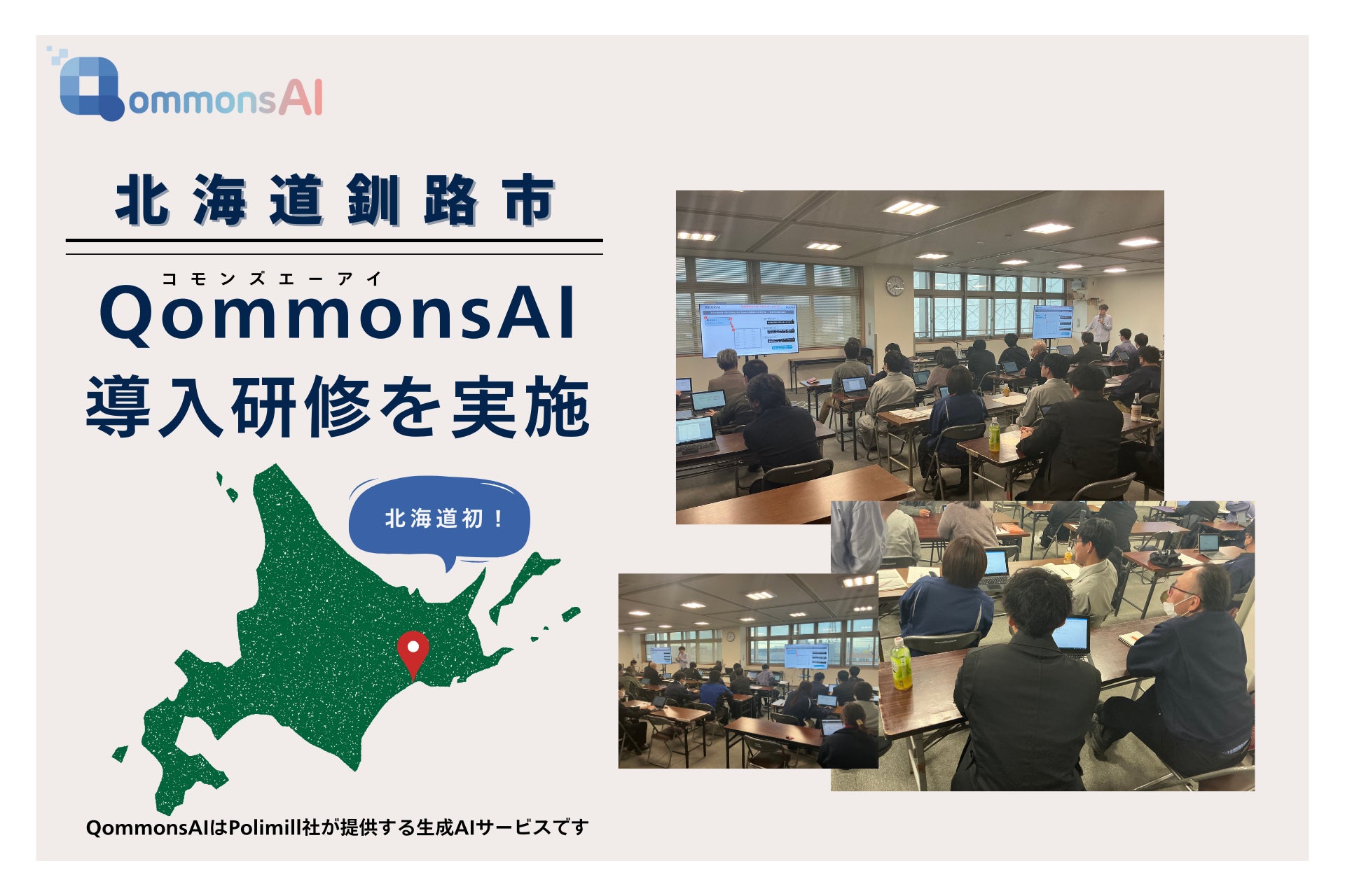 AIの社会実装をリードするPolimill株式会社(本社:東京都港区、代表取締役:横田えり、以下Polimill)は、北海道で初めての「QommonsAI」(以下、コモンズAI)導入サポート研修を釧路市で実施しました。 この研修では、市職員が生成AIの活用方法を学び、行政サービスの向上と業務効率化に向けた具体的なステップを踏み出しました。釧路市から始まるこの取り組みは、北海道内のDX推進を支える重要な第一歩となります。