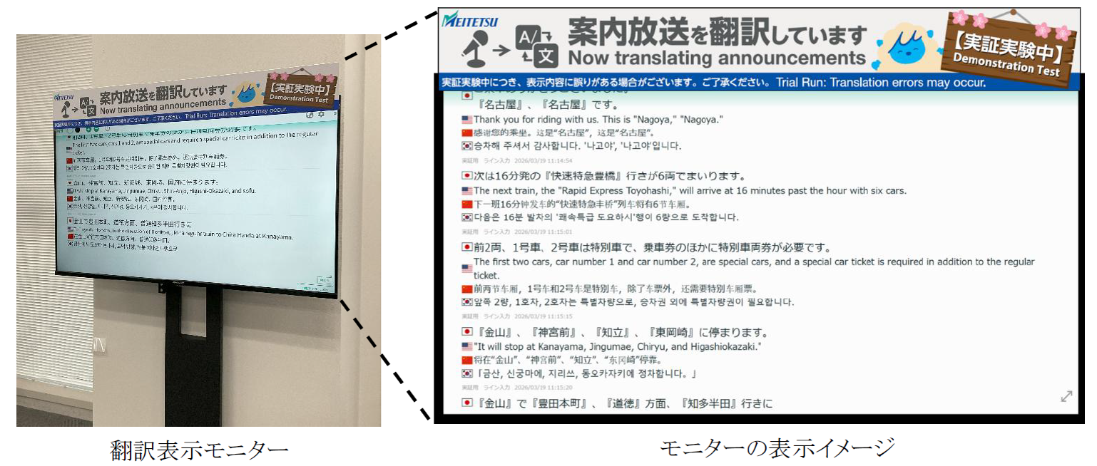 ~駅の音声放送が見える~ 名鉄名古屋駅で音声認識によるリアルタイム翻訳モニター案内の実証実験を実施します