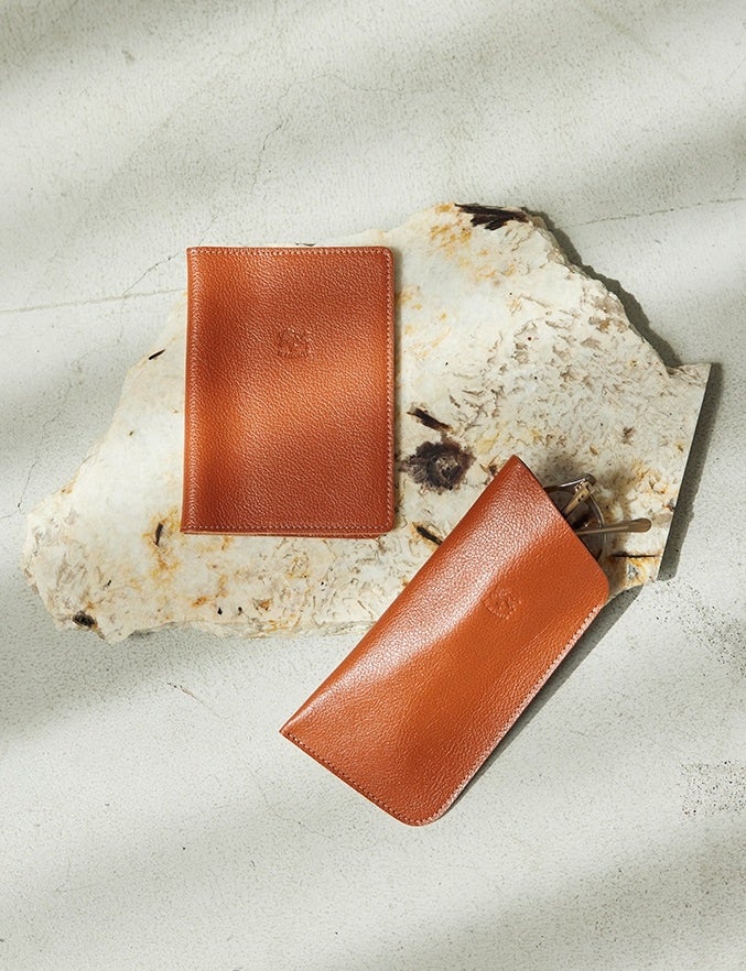 旅のお供には、艶やかにクラス感漂うパスポートケースを。開口部が広く、使いやすいメガネケースもおすすめ。