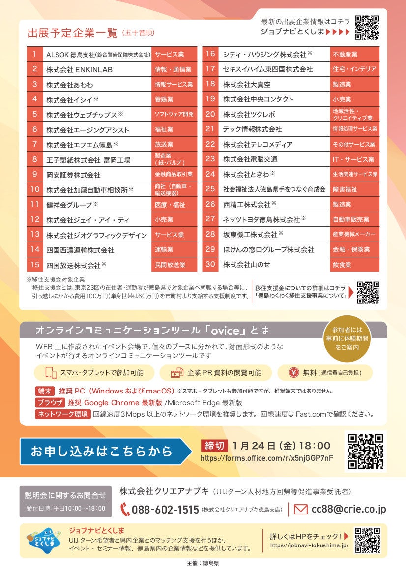 イベント名称:「徳島UIJターン オンライン合同就職説明会」