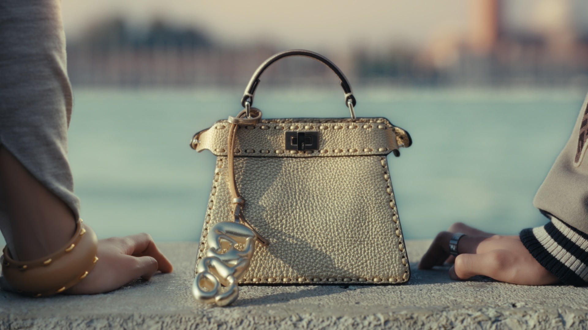 本ムービーは、「LABYRINTH OF VENICE」をコンセプトに、フェンディの最新ルックを身に纏った川口春奈と目黒蓮が、美しいヴェネチアの街を舞台に繰り広げられる、華やかで魅力的な物語が描かれています。物語の幕開けは川口春奈と目黒蓮のもとに届いた、フェンディからのインビテーションが、彼らを水上の迷宮都市・ヴェネチアへと導くシーンから始まります。ヴェネチアに降り立ったふたりは、目的地を目指しますが、迷宮のように入り組んだ街中で、川口春奈がゴンドラに置き忘れてしまった、ゴールドの「ピーカブー プチ(Peekaboo Petite)」を巡るすれ違いの物語が展開されます。