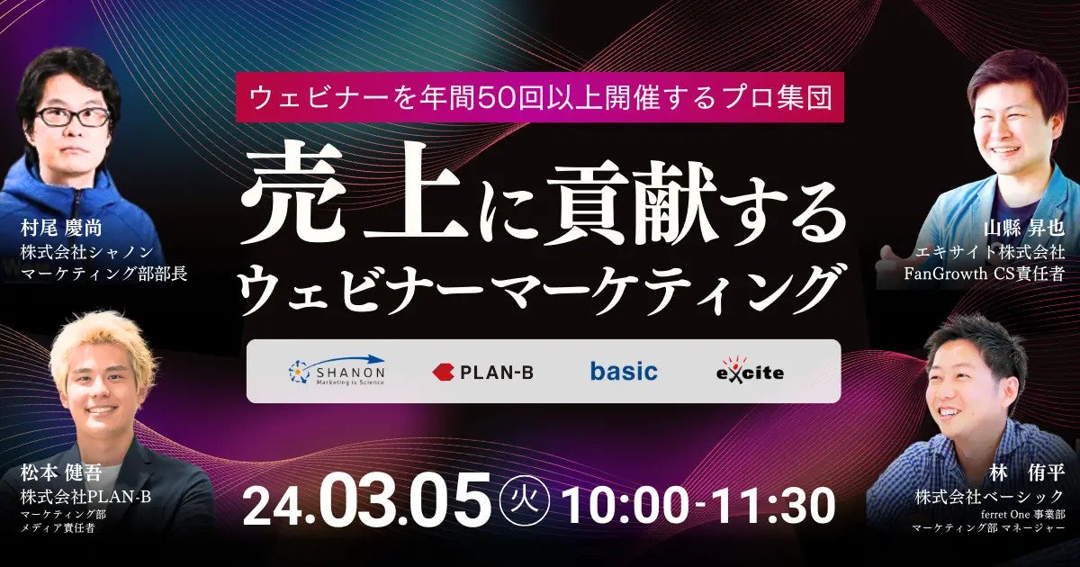 ベーシック、3/5(火)10時よりエキサイト社主催のセミナー「ウェビナーを年間50回以上開催するプロ集団 “売上に貢献するウェビナーマーケティング”」に登壇