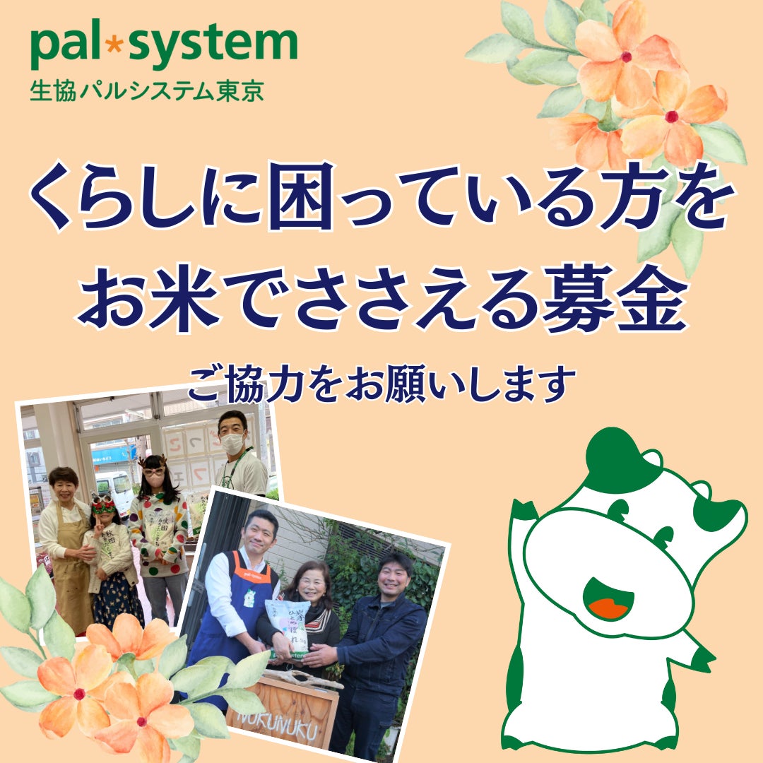 生活協同組合パルシステム東京(本部:東京都新宿区大久保、理事長:松野玲子)は5月6日(月祝)から「くらしに困っている方をお米でささえる募金」の受け付けを開始します。寄せられた募金はフードバンクや子ども食堂、社会福祉協議会などを通じて、生活困窮やひとり親の家庭への産直米の提供に活用します。