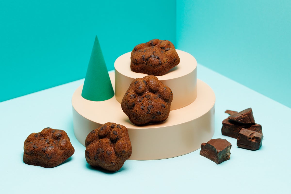 スペインでつくられたカカオ分66%のチョコレートとカカオ分44%のチョコチップを生地に練り込み、肉球型に焼き上げたフィナンシェです。