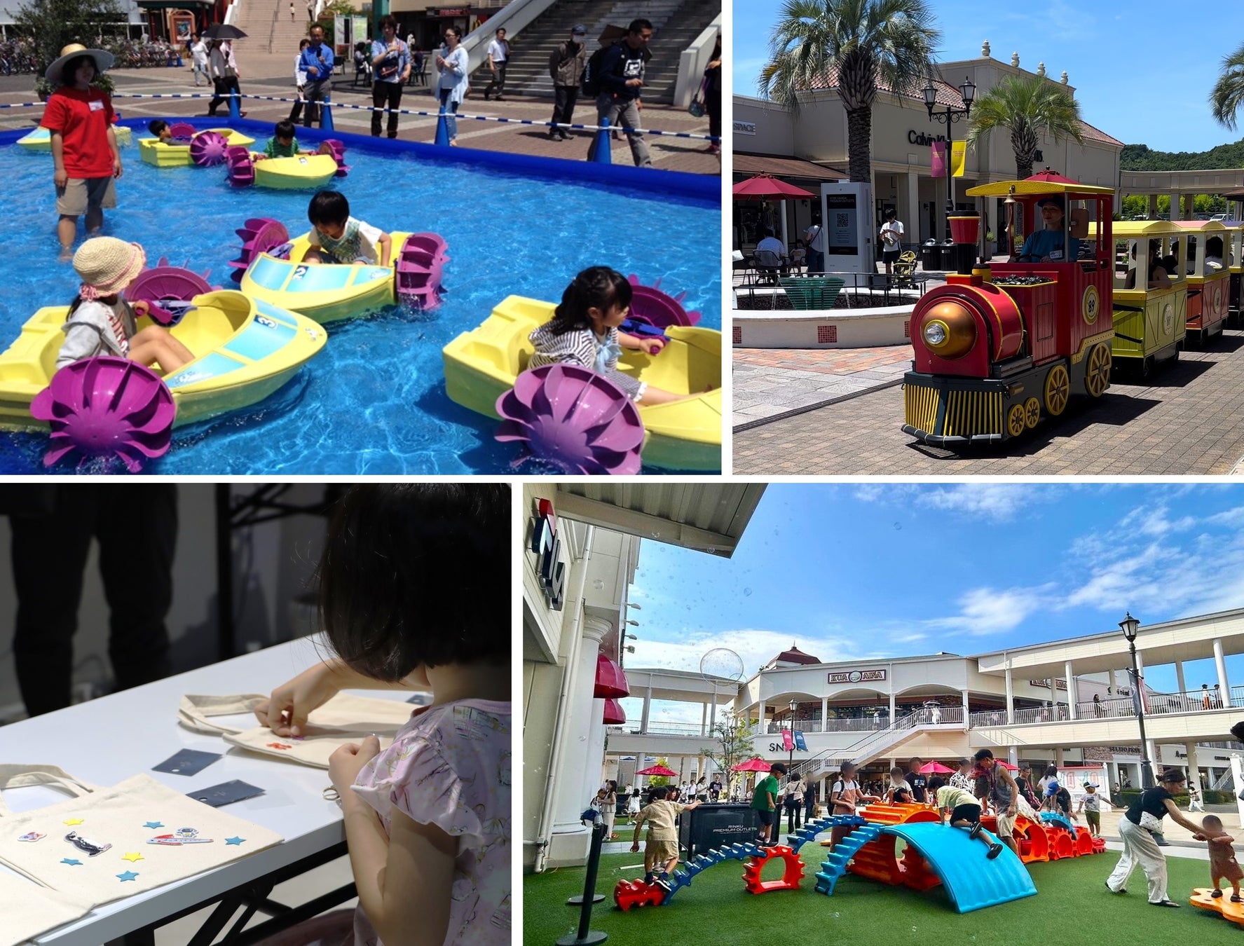 アウトレット場内に楽しいキッズボートが登場!約6m四方のプール内で、手漕ぎのボートに乗ってちゃぷちゃぷ遊べるキッズボート体験ができます。