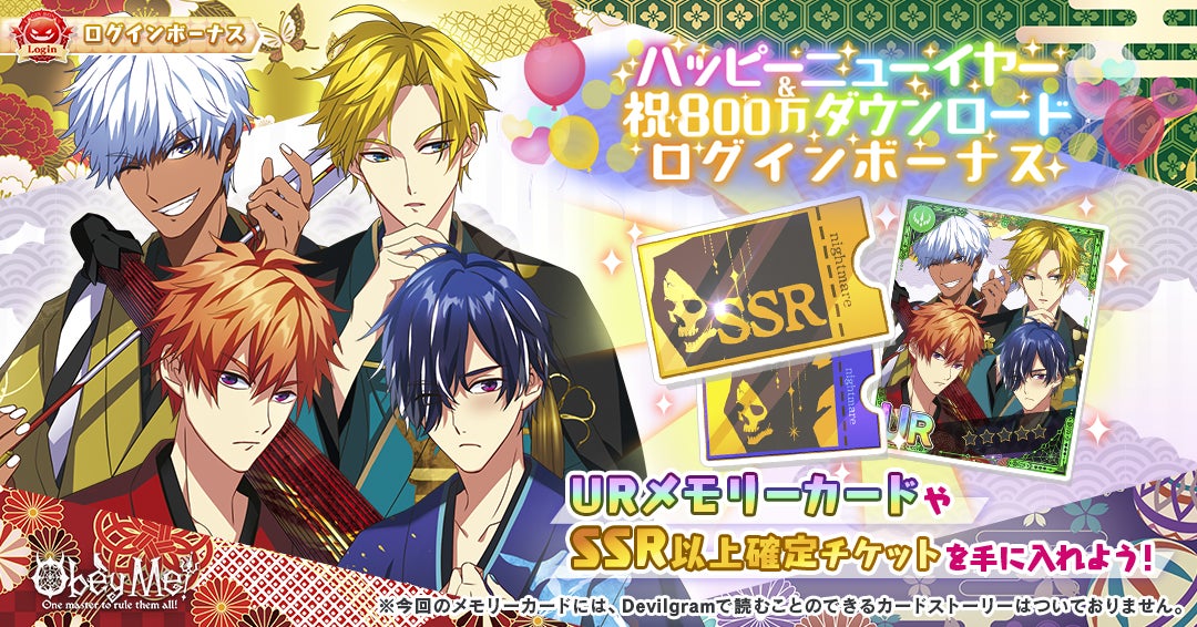 『Obey Me!』800万DL突破!ありがとう!800万DL&ニューイヤーを記念してログインボーナスを開催!