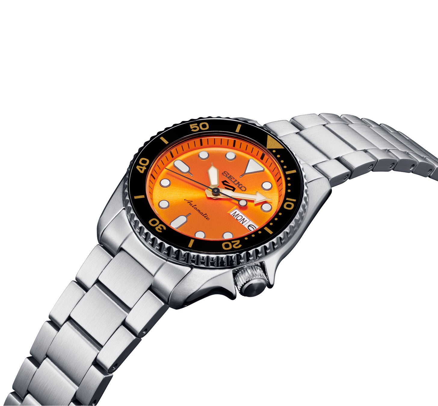 本作は、セイコー 5スポーツの魅力をコンパクトに凝縮し、レトロカラーを組み合わせて新たな個性を提案するモデルです。