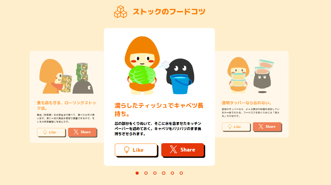 フードロスを減らすための食品の保存や管理の豆知識、お買い物や料理に関する小ネタなどの「生活の知恵」を「フードコツ」と呼び、たくさん集めて、紹介し、行動にうつす。それが「フードコツ」プロジェクトです。